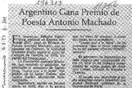 Argentino gana premio de poesía Antonio Machado [artículo]. El Mercurio (Diario : Santiago, Chile)-- mar. 6, 1993, página D11. 1 página. .
