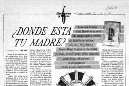 ¿Donde esta tu madre? [artículo] / Camilo Marks. La Epoca (Diario : Santiago, Chile)-- abr. 8, 1990. página 6 (suplemento "literatura y libros") 1 página : ilustraciones en blanco y negro. .
