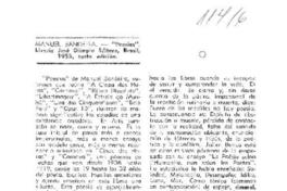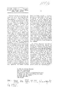 Manuel Bandeira [artículo] / Sergio Moreira. RNC (Revista : Santiago, Chile)-- no. 111 (julio 1955) página 236-237. 2 páginas. .