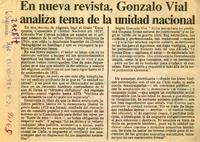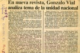 En nueva revista, Gonzalo Vial analiza tema de la unidad nacional [artículo]. La Segunda (Diario : Santiago, Chile)-- dic. 13, 1984, p. 2. 1 página ; 14 cm. .