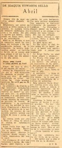 Abril mes de abril [artículo] : Joaquín Edwards Bello.