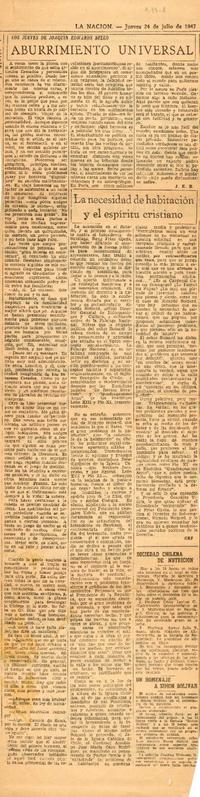 Aburrimiento [artículo] / Joaquín Edwards Bello. 11 artículos de prensa : ilustraciones en blanco y negro ; 35 cm. .