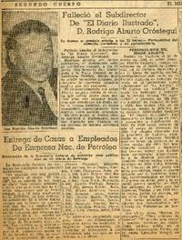 Falleció el Subdirector de "El Diario Ilustrado", D. Rodrigo Aburto Oróstegui / Rodrigo Aburto, cronista y viajero / M. W. -- Falleció Subdirector de "El Diario Ilustrado" / Dejo de existir anoche el periodista Rodrigo Aburto / Falleció anoche nuestro Subdirector Rodrigo Aburto / El poder del aburrimiento / Día a día -- R. M. / Condolencias por deceso de nuestro Sub-Director / Pesar y afecto en funerales de Don Rodrigo Aburto /