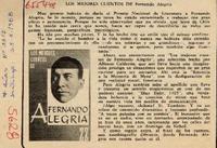 Los Mejores cuentos de Fernando Alegría [artículo]. 7 dias (Revista : Santiago, Chile) Numero 3312, (octubre-1968), sin numero de página. 1 página : ilustración en blanco y negro ; 8,5 cm. .