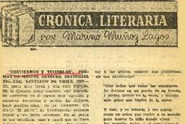 "Destierros y tinieblas" [artículo] / Por, Marino Muñoz Lagos. La Prensa Austral (Diario : Punta Arenas, Chile)-- mayo 10, 1964, sin numero de pagina. 2 páginas ; 32 cm. .