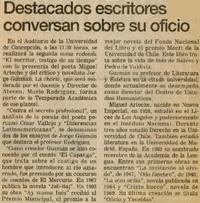 Destacados escritores conversan sobre su oficio [artículo]. El Sur (Diario : Concepción, Chile)-- ene. 18, 1995, p. 6. 1 página ; 20 cm. .