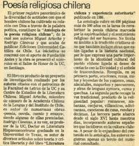 Poesía religiosa chilena [artículo]. El Sur (Diario : Concepción, Chile)-- dic. 25, 1989, p. 2. 1 página ; 10 cm. .