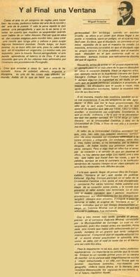 Y al final una ventana [artículo] / Miguel Arteche. El Cronista (Diario : Santiago, Chile)-- nov. 2, 1975, p. 12. 1 página : ilustraciones en blanco y negro. 28 cm. .