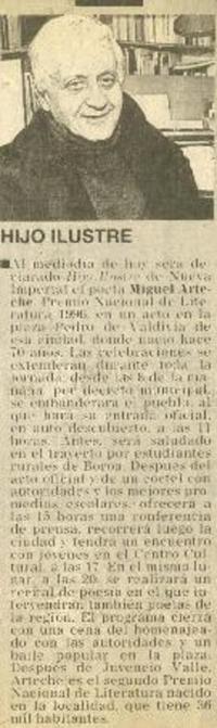 Hijo ilustre [artículo]. El Mercurio (Diario : Santiago, Chile)-- nov. 29, 1996, p. C17. 1 página : ilustración en blanco y negro ; 28 cm. .
