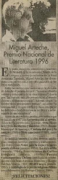 Miguel Arteche, Premio Nacional de Literatura 1996 [artículo].