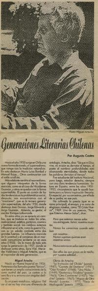 Generaciones literarias chilenas [artículo] / Por, Augusto Castro. La Mañana (Diario : Talca, Chile)-- nov. 20, 1994, p. 8. 1 página : ilustración en blanco y negro , 40 cm. .