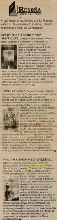 Reseña [artículo] / El Sur (Diario : Concepción, Chile)-- ene. 24, 1993, p. 9. (suplemento) 1 página : ilustraciones en blanco y negro. 32 cm. .