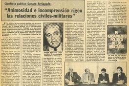 Animosidad e incomprensión rigen las relaciones civiles-militares" [artículo]. La Estrella (Diario : Valparaíso, Chile)-- mayo 8, 1987, p. 11. 1 página : ilustración en blanco y negro. 21 cm. .