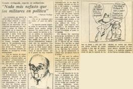 Nada más nefasto que los militares en política" [entrevista] / [artículo] : Patricia Verdugo. Fortín Mapocho (Diario : Santiago, Chile)-- abr. 21, 1987, p. 4. 1 página : ilustración en blaco y negro ; 25 cm. .