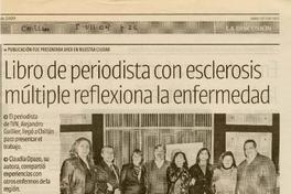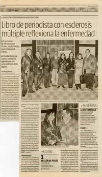 Libro de periodista con esclerosis múltiple reflexiona la enfermedad [artículo] / Carolina Marcos. La Discusión (Diario : Chillán, Chile).. Julio 5, 2009, página 26. 1 página : ilustración en blanco y negro ; 38 cm. .