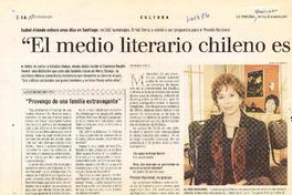 El medio literario chileno es muy machista y cerrado [entrevista] / [artículo] : Por, Marcelo Soto. La Tercera (Diario : Santiago, Chile)-- abr. 25, 2004, p. 14-15. 2 páginas : ilustración en color ; 20 cm. .