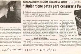 "Quién tiene patas para censurar a Parra!" [artículo] / J. G. La Nación (Diario : Santiago, Chile)-- Agosto 22, 2006, página 27. 1 página : ilustración en blanco y negro ; 13 cm. .