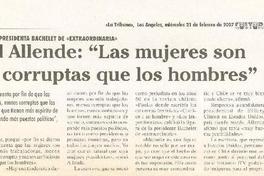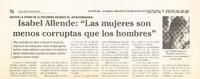 "Las mujeres son menos corruptas que los hombres" [artículo]. La Tribuna (Diario : Los Angeles, Chile)-- feb. 21, 2007, p. 22. 1 página : ilustración en blanco y negro ; 10 cm. .