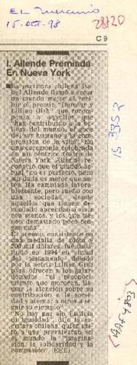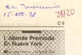 I. Allende premiada en Nueva York [artículo] EFE.