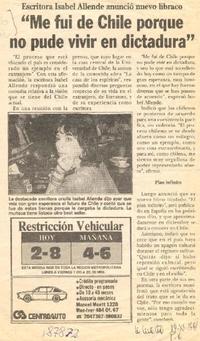"Me fui de Chile porque no pude vivir en dictadura". [artículo]. La Cuarta (Diario : Santiago, Chile)-- Noviembre 19, 1991, página 6. 1 página : ilustración en blanco y negro ; 23 cm. .