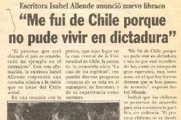 "Me fui de Chile porque no pude vivir en dictadura". [artículo].