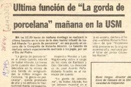 Ultima función de "La gorda de porcelana" mañana en la USM [artículo].