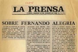 Sobre Fernando Alegría [artículo] / Jorge Jobet. La Prensa (Diario : Curicó, Chile)-- ago. 10, 1985, p. 3-4. 1 página ; 28 cm. .