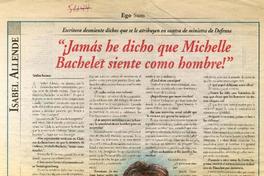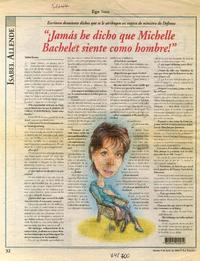 "¡Jamás he dicho que Michelle Bachelet siente como hombre!" [entrevista] / [artículo] : Carolina Rosseau. La Nación (Diario : Santiago, Chile)-- jul. 9, 2002, p. 32. 1 página : ilustración en color ; 33 cm. .