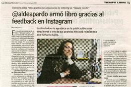 @aldeapardo armó libro gracias al feedback en instagram [entrevista] / [artículo] : Natalia Junco. Las Últimas Noticias (Diario : Santiago, Chile)-- Octubre 18, 2021, página 37. 1 página : ilustración en color ; 25 cm. .