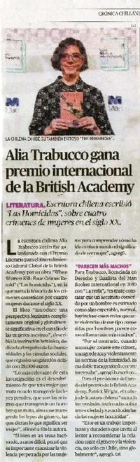 Alia Trabucco gana premio internacional de la British Academy [artículo]. Crónica (Diario : Chillán, Chile)-- Octubre 28, 2022, página 19. 1 página : ilustración en color ; 28 cm. .
