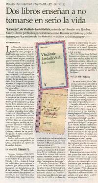 Materias: Autores ingleses - Strachey, Lytton - Aubrey, John - De Quincey, Thomas - La muerte de los filósofos - Jankélevitch, Vladimir - La ironía