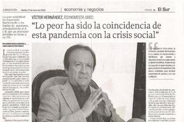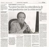 Lo peor ha sido la coincidencia de esta pandemia con la crisis social [entrevista] / [artículo] : Carmen Gloria Sandoval. El Sur (Diario : Concepción, Chile)-- mar. 17, 2020, p. 11. .