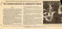 En Londres estrenan su adaptación teatral [artículo]. La Nación (Diario : Santiago, Chile)-- mayo 13, 1993, página 32. 1 página : ilustraciones en blanco y negro ; 13 cm. .