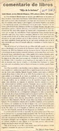 Materias: Autoras chilenas - Allende, Isabel - Hija de la fortuna