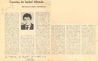 Cuentos de Isabel Allende [artículo] / Wellington Rojas Valdebenito. La Tribuna (Diario : Los Angeles, Chile)-- Mayo 25, 1990, página 3. 1 página : ilustraciones en blanco y negro ; 18,5 cm. .