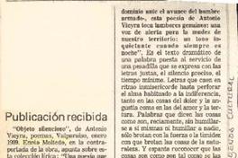 Materias: Autores chilenos - Vieyra, Antonio - Objeto silencioso