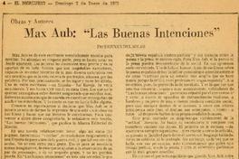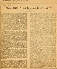 Max Aub: "Las buenas intenciones" [artículo] / Hernán del Solar. El Mercurio (Diario: Santiago, Chile) ene. 2, 1972, página 4. 1 página : 21 cm. .