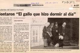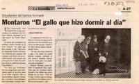 Montaron "El gallo que hizo dormir al día" [artículo]. La Estrella (Diario : Iquique, Chile)-- nov. 13, 2003, página A27. 1 página : ilustración en blanco y negro ; 14 cm. .