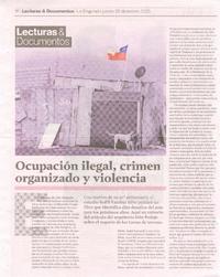 Ocupación ilegal, crimen organizado y violencia [artículo] / Por Hannah Murphy. La Tercera (Diario : Santiago, Chile)-- Diciembre 28, 2023, página 14-16. 1 página : ilustraciones en color ; 36 cm. .
