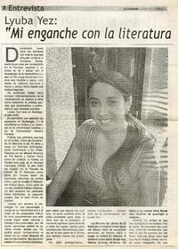 "Mi enganche con la literatura es emocional" [entrevista] / [artículo] : Por Jorge Abasolo Aravena. El Labrador (Diario : Melipilla, Chile)-- Febrero 22, 2009, página 2-3. 2 páginas : ilustración en blanco y negro ; 32,5 cm. .