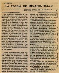 La poesía de Melania Tello [artículo] Escribe: Dario de la Fuente D.