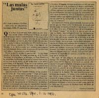 "Las malas juntas" [artículo] / Alfonso Calderón. Apsi (Revista : Santiago, Chile)-- Número 176, 1986, página 50. 1 página : ilustración en blanco y negro ; 16 cm. .