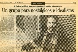 Un grupo para nostágicos e idealistas [artículo] / Yenny Caceres. La Época (Diario : Santiago, Chile)-- Agosto 30, 1994, página 13. 1 página : ilustración en blanco y negro ; 35 cm. .