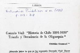 Materias: Autores chilenos - Vial Correa, Gonzalo - Historia de Chile 1891-1920