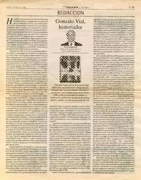 Gonzalo Vial, historiador [artículo] / Alvaro Góngora E. La Segunda (Diario : Santiago, Chile) Mayo 9, 2005, página 11. 1 página : ilustración en blanco y negro ; 37 cm. .