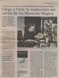 Llega a Chile la traducción sin cortes de La Montaña Mágica [artículo] / Roberto Careaga C. La Tercera (Diario : Santiago, Chile) Octubre 3, 2006, página 42. 1 página : ilustraciones en blanco y negro ; 29 cm. .