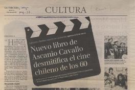 Nuevo libro de Ascanio Cavallo desmitifica el cine chilenos de los 60 [artículo] / Rodrigo González M. La Tercera (Diario : Santiago, Chile)-- Febrero 20, 2007, página 37. 1 página : ilustraciones en blanco y negro ; 34 cm. .