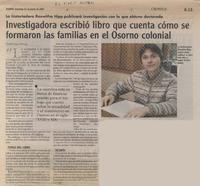Investigadora escribió libro que cuenta cómo se formaron las familias en el Osorno colonial [artículo] Pamela Vergara Moraga.