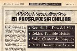 Crítico sueco muestra en prosa, poesía chilena [artículo].