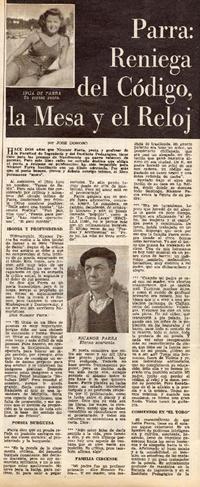 Parra : Reniega del Código, la Mesa y el Reloj [artículo] Por José Donoso.